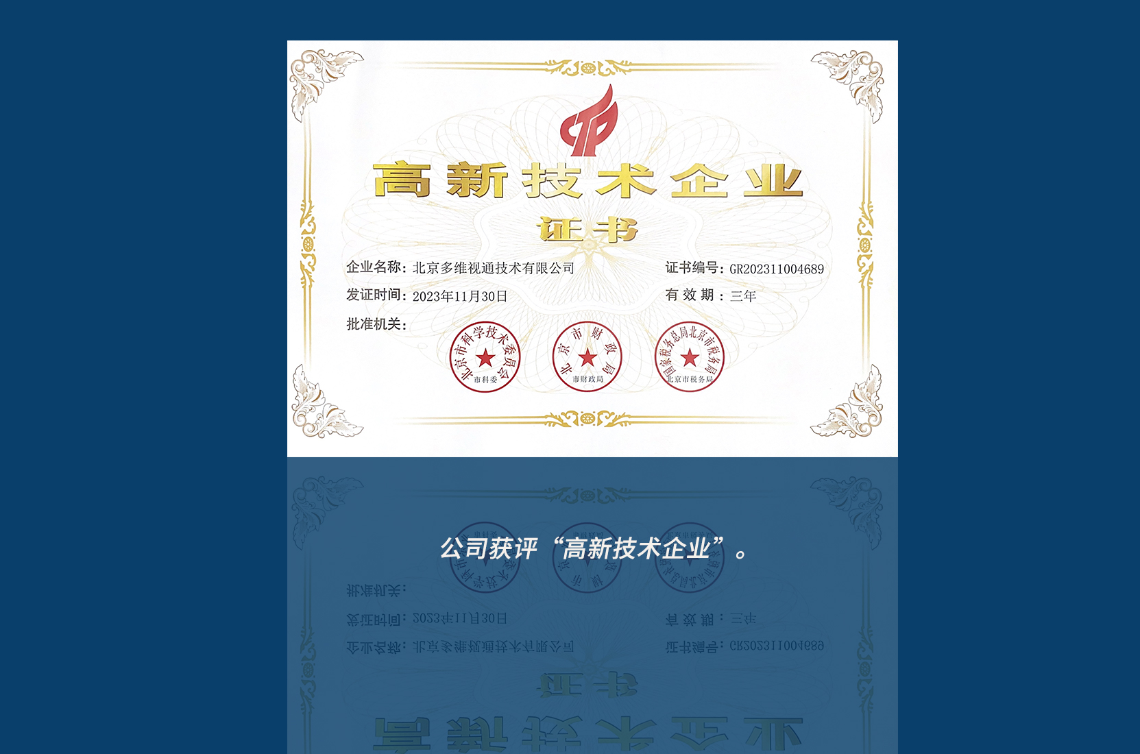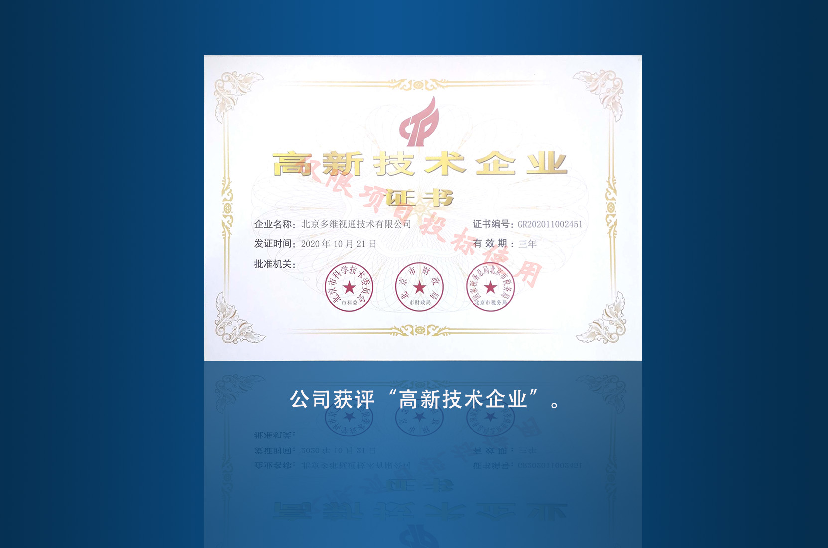 公司獲評“中關村(cūn)高(gāo)新技(j↑←ì)術(shù)企業(yè)”。